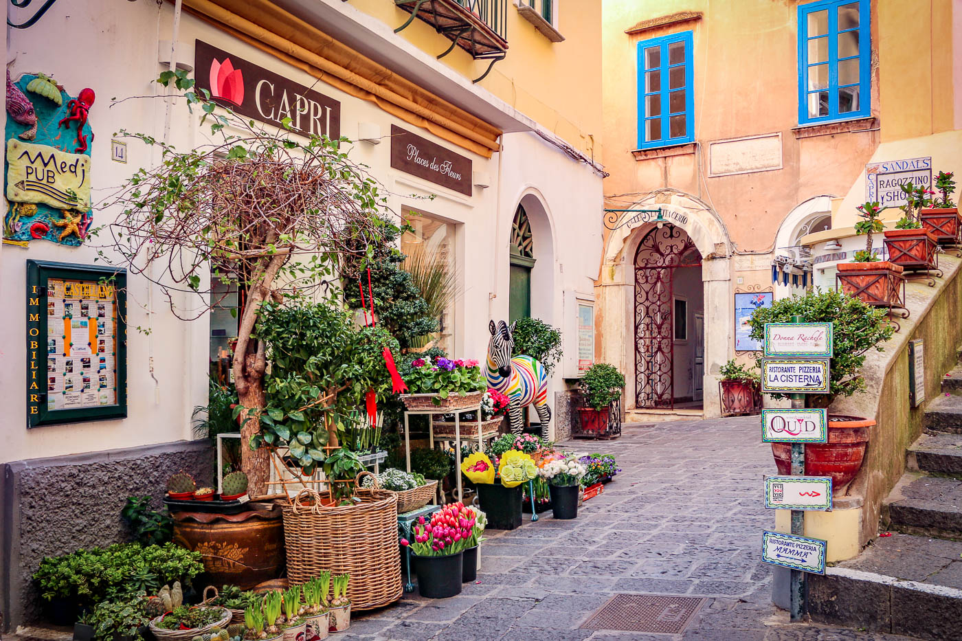 “Piazza Umberto I”Секој италијански град има свој централен плоштад а на Капри тоа е “Piazza Umberto I” позната како Ла Пјацета… некогаш пазар за риба, денес главно собиралиште и на мештаните и на туристите.